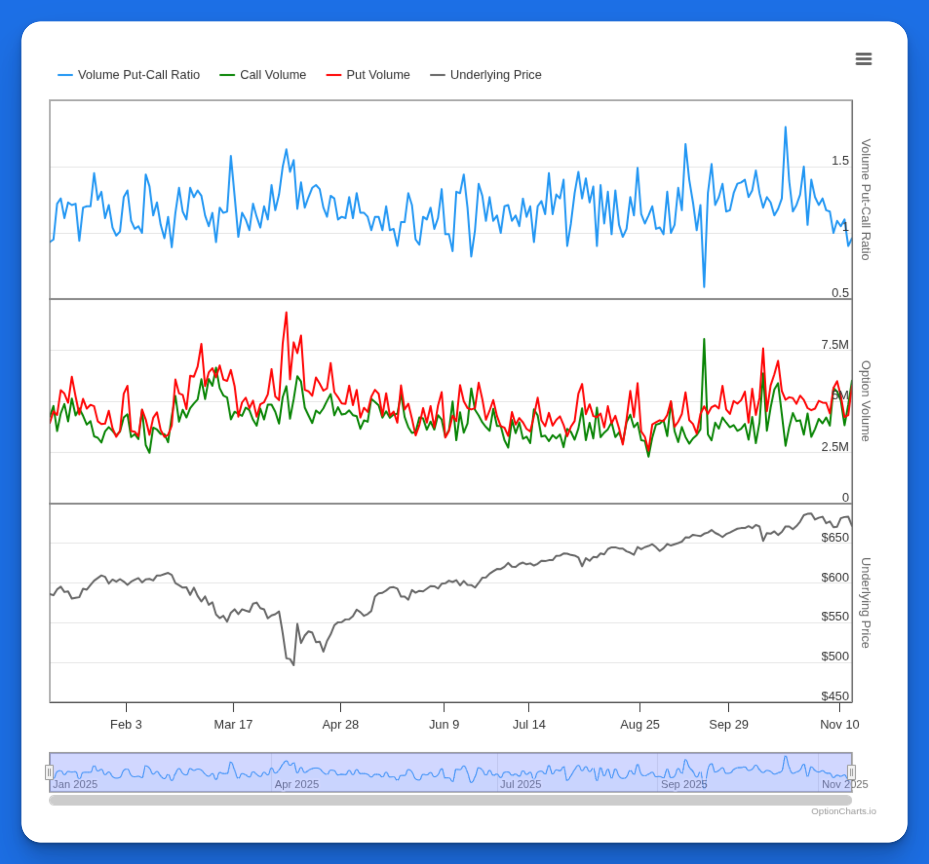 - Option Volume History - Track total option volume and volume put-call ratio over time